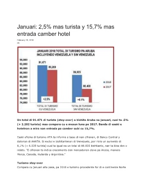 Compara cu januari aña pasa, pa 2018 e turismo procedente for di e continente Norte