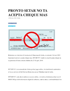 banconan local no ta acepta cheque mas, SETAR N.V. tambe ta stop di acepta cheque na