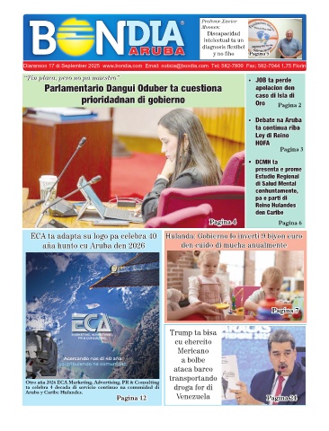 Diaranson 17 di September 2025 www.bondia.com Email: noticia@bondia.com Tel: 582-7800 Fax: 582-7044 1,75 Florin