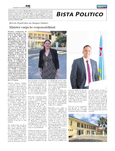 e minister ta sinti su mes op gunta. E minister tin e deber Wyatt-Ras a trece alabes su nos tin mas cu 1000 caso ister no ta pro-activo. E mes-