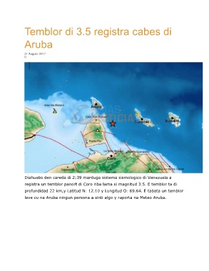 leve cu na Aruba ningun persona a sinti algo y raporta na Meteo Aruba.