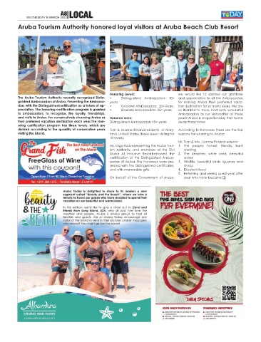 The Aruba Tourism Authority recently recognized Distin- • Distinguished Ambassadors: 10> and appreciation to all the Ambassadors