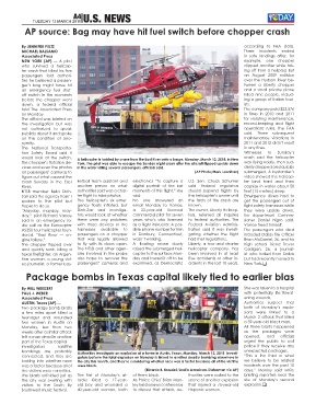 bombings are probably Authorities investigate an explosion at a home in Austin, Texas, Monday, March 12, 2018. Investi- unexpected packages.