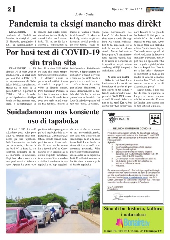 parse COVID-19, por tèst di Pero Salubridat Públiko ta p’esei departamento di Sa- lesa skirbi ni tin sédula ? Segun Sealy, si kos sali
