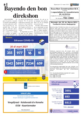 2021 tin 355 kaso aktivo. persona ta den hospital na tené e reglanan di higiena. deciros: hijos míos, quien reza no le tiene miedo al