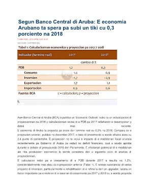 proyeccionnan pa 2018 y calculacionnan revisa di e PDB pa 2017 reflehando e desaroyonan y