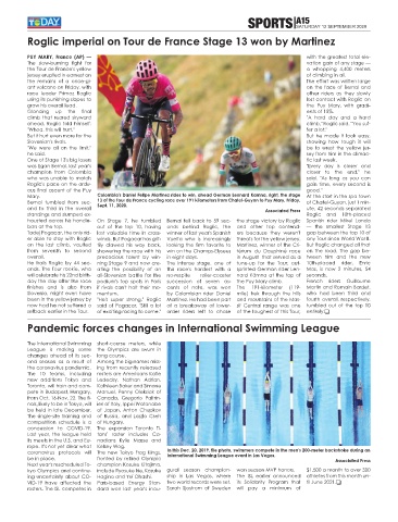 He trails Roglic by 44 sec- ning Stage 9 and now cre- The intense stage, one of tune-up for the Tour, out- 10th-placed rider, Enric