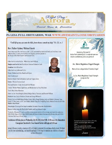 Father Jacob is survived by his: Wife: Avlyn Jacob-Williams