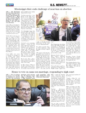 in multiple states follow- not to have an abortion.” astating,” she said in a state- West Virginia suspended Kanawha County Circuit