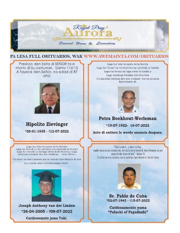 A fayece den Señor, na edad di 87 Laga tur locual mi laga atras ta bunita y