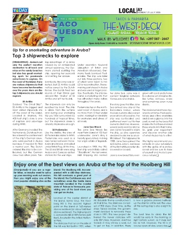 ties ordered the confinement SS Pedernales dates to WWII. underwater. Jane’s story is decided to sink her as an ar- of what Aruba has to offer!