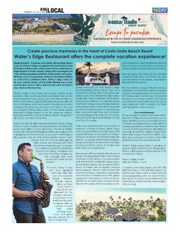 top-rated sandy beaches.                                Dinner  plans  are  set  with  Water’s  Edge  End the culinary voyage with some luscious