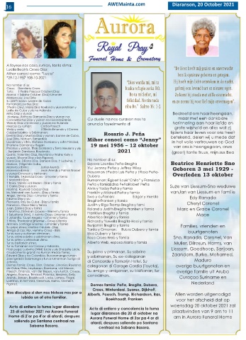 23 di october 2021 na Aurora Funeral lugar diaranson dia 20 di oktober na plaatsvinden van 9 am to 11