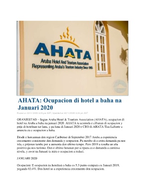 hotel na Aruba a baha na januari 2020. AHATA ta acumula e cifranan di ocupacion y