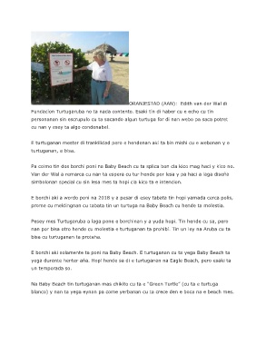prome cu meldingnan cu tabata tin un turtuga na Baby Beach cu hende ta molestia.