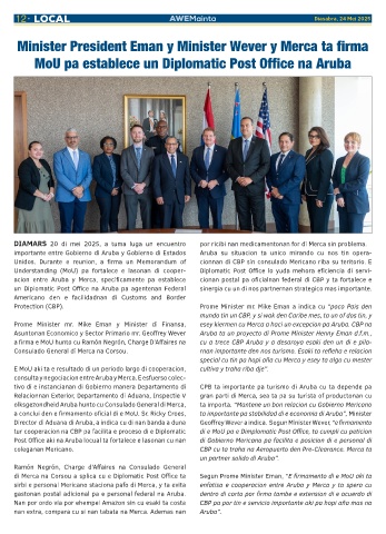 tur cooperacion na CBP pa facilita e proceso di e Diplomatic di e MoU pa e Dimplomatic Post Office, ta cumpli cu peticion