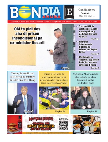 Diasabra 24 di Mei 2025  www.bondia.com  Email: noticia@bondia.com  Tel: 582-7800  Fax: 582-7044 1,75 Florin