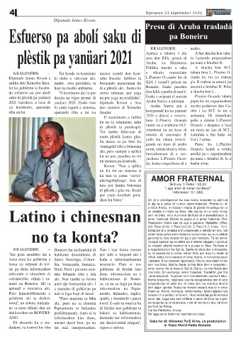 gobièrnu aki ta deskri- "Pues mayoria ta biba spañó, i mandarin i patuá amor akí. Laga nos ban reflehá e amor di Dios na e per-