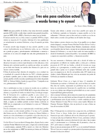 For di formacion di e coalicion pueblo a cera conoci cu e Awe e mesun Gobierno aki ta trata di sconde tras di e pandemia