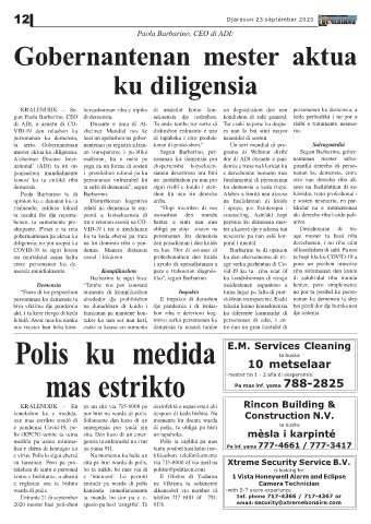 Entrante 21 di sèptèmber ta manda bo dor pa e e- telefòn 717 6181 òf 781- Inf. phone 717-4366 / 717-4367 or