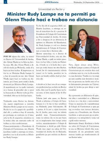 Minister Rudy Lampe no ta corecto. na Hulanda, pues fisicamente. El di Colegio di Curatornan a opta pa