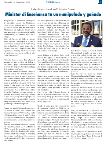 cu Gobierno di AVP a haci den scolnan di enseñansa, e kier draai a asuntonan. AVP, Marlon Sneek a declara.