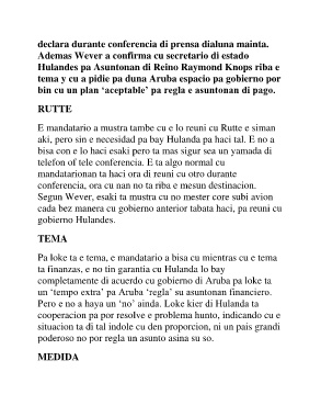 E mandatario a mustra tambe cu e lo reuni cu Rutte e siman