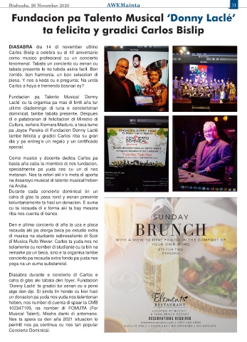 di Musica Rufo Wever. Carlos ta yuda nos no W I T H A V I E W T O D I N E F O R O R I N T H E C O M F O R T O F