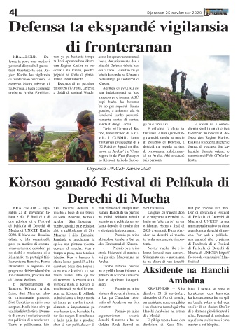 sabra 21 di novèmber ta- mucha a base di un teksto garam. Banda di un premio Despues ku transmishon Dor di organisá e Festival
