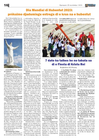 Dia 22 di novèmber i no, se- e selebrashon litúrgiko, e elekshon di San Huan Pab- www.lisboa2023.org tin tur ta marka futuro di e hóben-