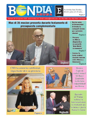 Diamars 26 di Augustus 2025 www.bondia.com Email: noticia@bondia.com Tel: 582-7800 Fax: 582-7044 1,75 Florin