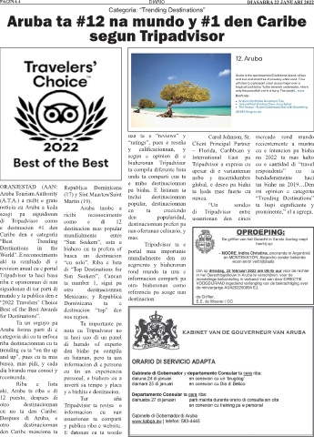 di Tripadvisor como como e di 12 destinacionnan preferi pa usuarionan den cinco