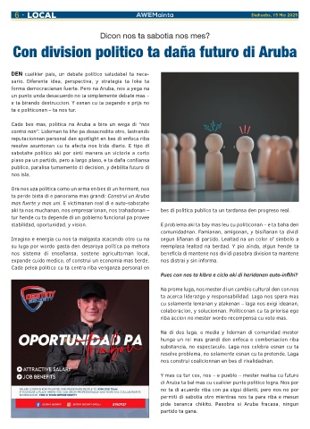 di Aruba ta bal mas cu cualkier punto politico logra. Nos por