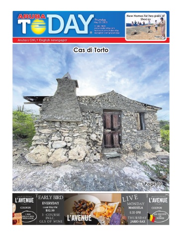 New Homes for two pairs of Thursday Shocos May 15, 2025 T: 582-7800 www.arubatoday.com facebook.com/arubatoday instagram.com/arubatoday Page 9 A r u b a ’ s O N L Y E n g l i s h n e w s p a p e r Aruba’s ONLY English newspaper Cas di Torto Page 10