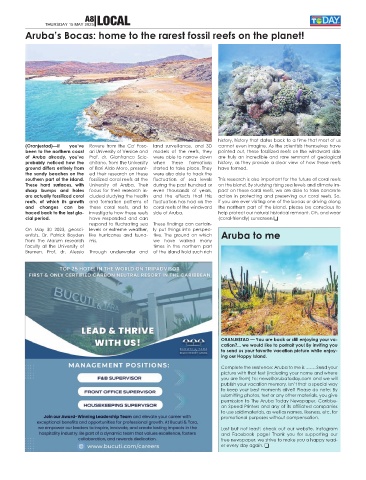 traced back to the last gla-  investigate how these reefs  side of Aruba.              help protect our natural historical remnant. Oh, and wear