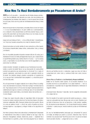 NOS tur ta di acuerdo — piscadornan di Aruba merece protec-