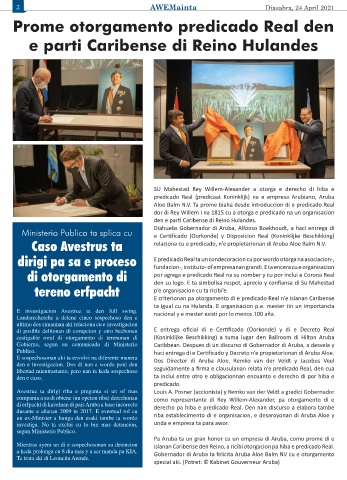 Caso Avestrus ta relaciona cu e predicado, n’e propietarionan di Aruba Aloe Balm N.V.
