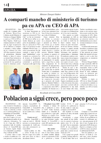 ORANJESTAD -- Ofi- durante Censo2020? Ta 9 Resultado Censo 2020 homber 47,2%. E edad presenta 21,2% di nos po-