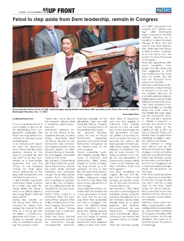 for a while,” she said. “Be- did not, telling reporters af- take charge. to new Democrats. haul. At the time, Pelosi
