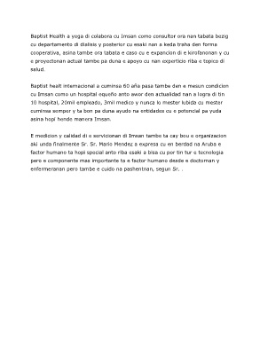 Baptist Health a yega di colabora cu Imsan como consultor ora nan tabata bezig