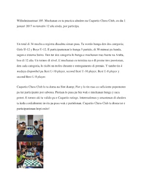 ta keda cordialmente invita pa pasa wak e partidonan. Caquetio Chess Club ta desea tur e