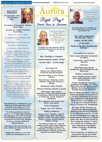 anochi na Aurora Funeral Home. Famia: Ita y Tico Maduro donacion pa Stichting HOPE