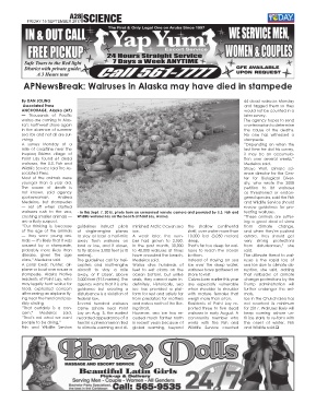cern,” Medeiros said. Lay on Aug. 3, the earliest However, sea ice has re- walruses in early August. A keep coming ashore un-