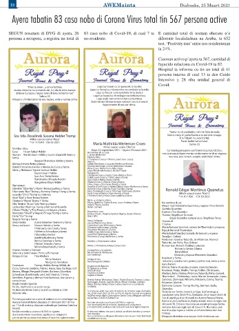 Aurora Funeral Home diasabra 27 di maart 2021 di 9’or Nos kier recorda cu protocol di DVG ta vigente: Famia ta pidi porfabor no baha di auto debi na regla nan