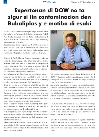 tabatin influencia grandi riba e calidad di awa den e of algo otro, cu a ocasiona morto di tanto pisca.