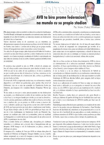 deportivo y di futbol en particular, pero tambe riba nivel di Awor cu e adkisicion di stadion di Yara ta surgi un situacion