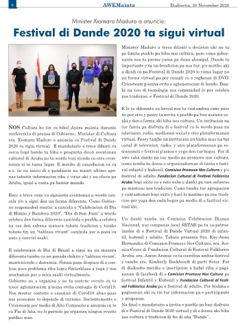 cu Fin di Aña, no lo permiti pa organisa ningun evento di e Festival di Dande 2020 virtual y di e forma aki biba