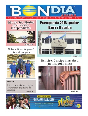 Diaranson 25 di APRIL 2018 www.bondia.com Email: noticia@bondia.com Tel: 582-7800 Fax: 582-7044 1,50 Florin