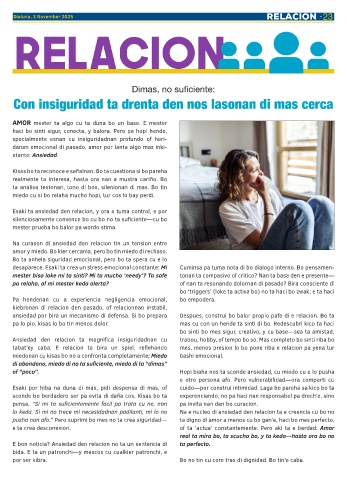 Esaki ta ansiedad den relacion, y ora e tuma control, e por