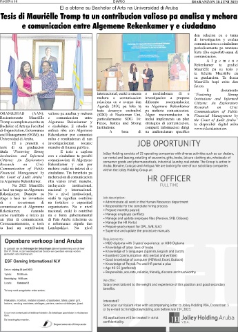 El a obtene su Bachelor of Arts na Universidad di Aruba